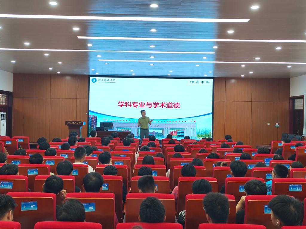 学院副院长李为腾以《学科专业与学术道德》为题,向同学们介绍了学院的学科发展历程、平台构建以及高校阅读科研论文的方法,他强调,科学研究要坚持以诚实守信为基础、以追求真理为核心的理念,要恪守学术诚信,珍视学术声誉,将“求真务实、严谨创新”的科学精神内化于心、外化于行。