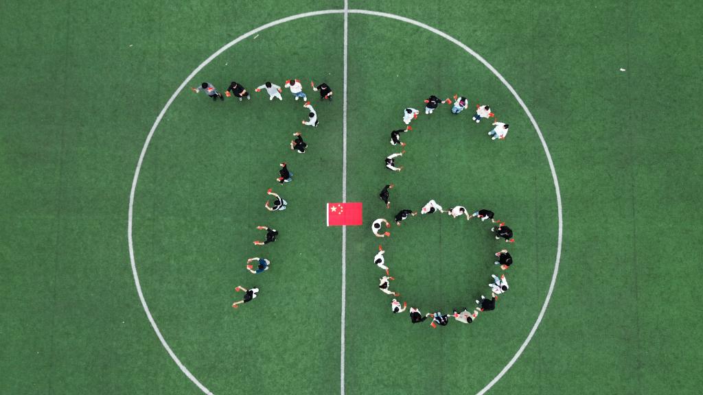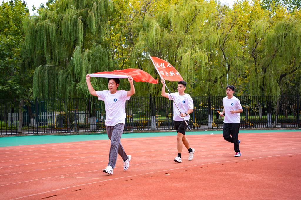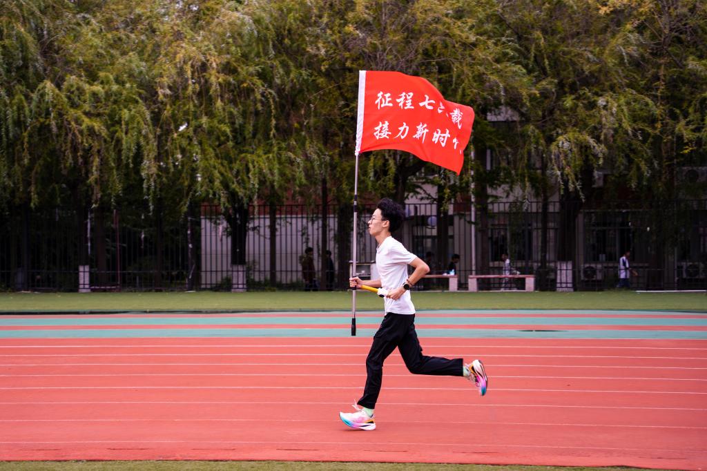 活动伊始,庄严的国歌奏响,全体人员面向国旗行注目礼,高唱国歌,工作人员有序奔向预定位置,以身躯为笔,以绿茵为卷,用充满活力的身影,精准地汇合、排列,瞬间定格为一个具象而辉煌的图案——“76”造型赫然呈现。随后,诸侯快讯官网研究生辅导员史卫平发表致辞,她指出,今天的接力跑活动,既是对历史的致敬,也是对未来的展望,希望同学们能将爱国之情、强国之志转化为报国之行,奔跑出属于自己的青春。本次接力跑从象征1949年新中国成立的起点出发,参赛选手们以400米、800米为赛段依次接力,用脚步丈量热忱,用汗水诠释担当,从1964年第一颗原子弹爆炸成功,到1978年改革开放的伟大转折;从1997年香港回归的民族欢腾、2008年北京奥运会的无上荣耀,再到2020年脱贫攻坚全面胜利的伟大奇迹……选手们奔跑的每一步都凝聚着对祖国的深情告白。