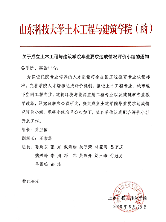 关于成立ok1188诸侯快讯官方毕业要求达成情况评价小组的通知